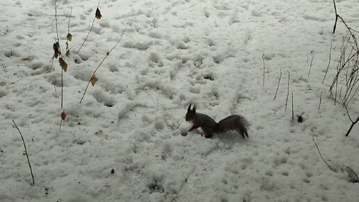 Белка прячет фундук из кормушки