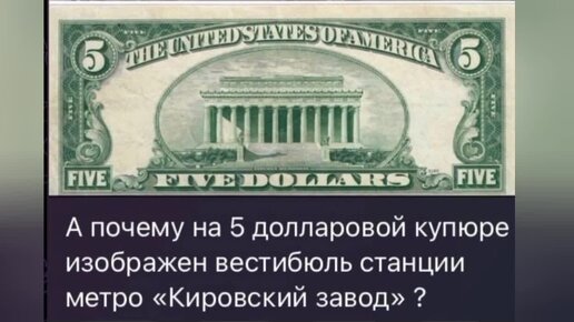 Почему на 5-долларовой купюре изображена станция метро Кировский завод