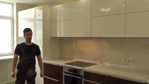 Угловая кухня глянец. Фасады МДФ покраска. Видео №3. Столешница пластик.