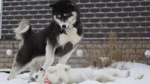 Спасенный щенок хаски по имени Стая. Мои собаки оценили😅🙃