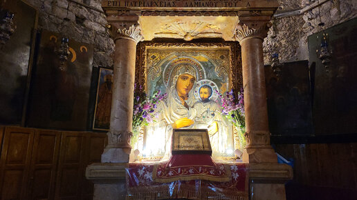 В полутьме Храма Успения Богородицы сияет икона Богородицы Иерусалимской
