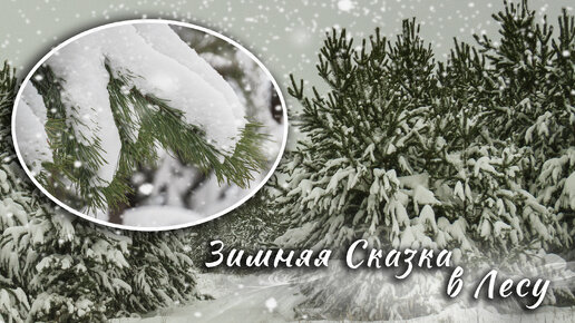 Природа: Сказочный зимний лес, усыпанные снегом деревья. Снежинки падают на ветви сосен. Замела метель.