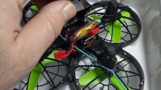 Подготовка к заряжанию игрушечного квадрокоптера SYMA X26