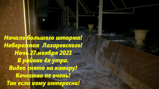 Шторм века, набережная 27.11.23 в 4- утра! Качество ужастное. Лазаревское. В хорошем качестве ролик вышел 27.11.23.