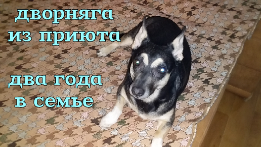 Дворняга из приюта два года в семье.