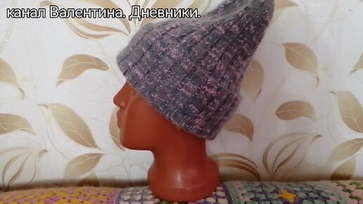 Шапка из пуха норки в две нити спицами с отворотом резинкой 3*2. Как вязала.