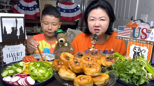 Мукбанг с МИШУТКОЙ Беляши, Много ЗЕЛЕНИ! Уровень английского Миши-носитель языка! ЛУЧШИЙ из ЛУЧШИХ!