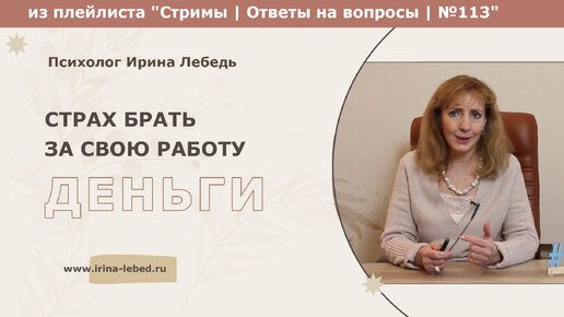 Страх брать деньги за свою работу - из плейлиста Стримы | Ответы на вопросы № 113 - психолог Ирина Лебедь