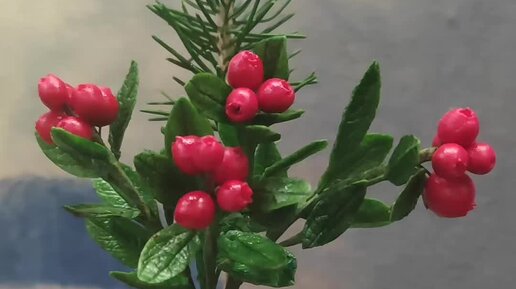 Новогодняя тема. Сочная брусника и еловая веточка из сахарной мастики
