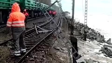 Часть железной дороги подмыло штормом в районе Лазаревской