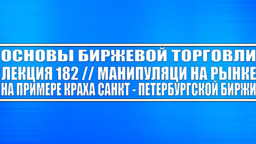 Основы биржевой торговли #182 / Манипуляции на рынке (на примере краха Санкт - Петербургской биржи)