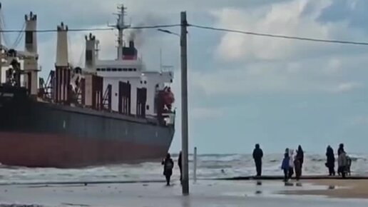 Кадры сухогруза Blue Shark, севшего на мель в Витязево