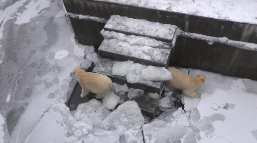 Для медвежатат лед на дне бассейна это что-то новое. 27.11.2023