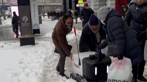 На Зубовском бульваре москвичи помогают роботу