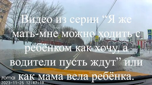 Видео из серии “Я же мать-мне можно ходить с ребёнком как хочу, а водители пусть ждут” или как мама вела ребёнка.