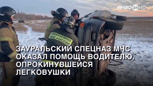 Зауральский спецназ МЧС оказал помощь водителю и пассажиркам, опрокинувшейся легковушки. (2023-11-27)