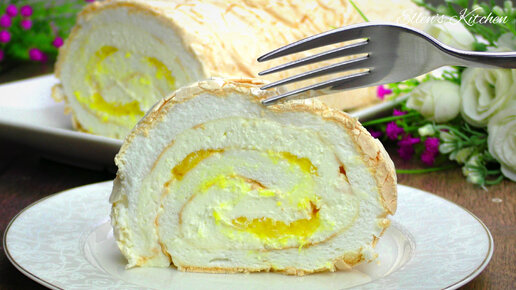 Меренговый рулет с апельсиновой начинкой, тает во рту! Просто и очень вкусно!