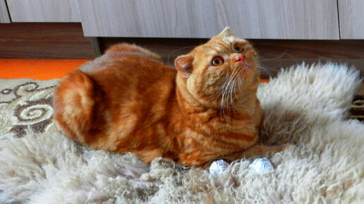 Котик Бася, шарики и новый коврик.