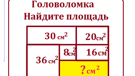 Головоломка. Найдите площадь прямоугольника без применения дробных чисел