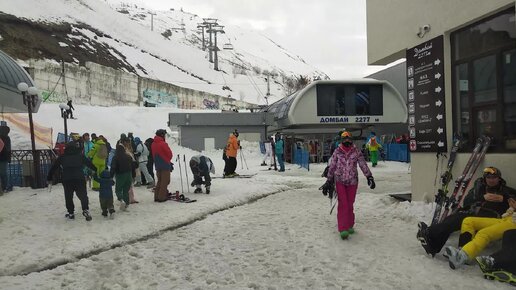 Домбай. Прогулка по горнолыжному курорту. Март 2022