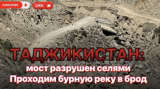 Мост разрушен селями, проходим реку в брод. Таджикистан. Памирский тракт.