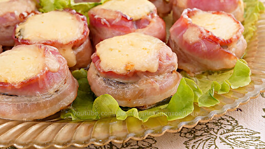 🍄🥓🧀 Шампиньоны в беконе с адыгейским сыром, чесноком и зеленью. Сочная горячая закуска из грибов!