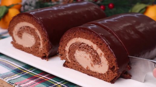 Нежный пропитанный шоколадный рулет, вместо торта на Новый год. Бисквит эластичный, не трескается, сочетается с шоколадно-ореховым кремом