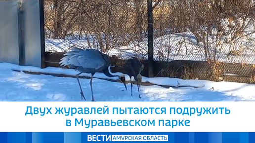 Двух журавлей пытаются подружить в Муравьевском парке