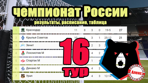 Чемпионат России (РПЛ). 16 тур. Результаты. Расписание. Таблица. ЦСКА – Динамо. Зенит обошёл Краснодар.