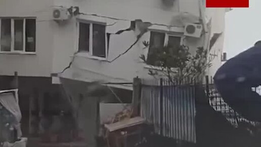 В Лоо море подмыло фундамент трёхэтажного эллинга, в результате часть дома разрушилась.