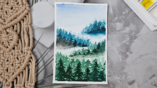 Рисуем лес акварелью 🏞 / простой рисунок акварелью