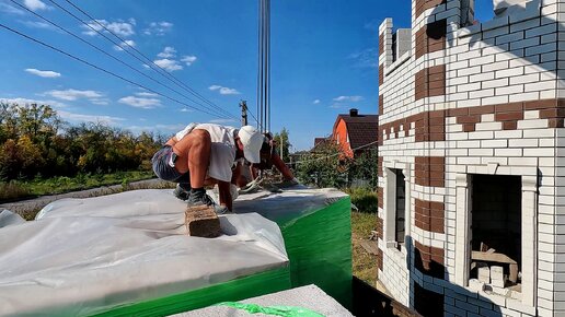 Мастера своего дела! Каменщики строят 2-х этажный дом с эркерами и гаражом. Подробный процесс строительства.