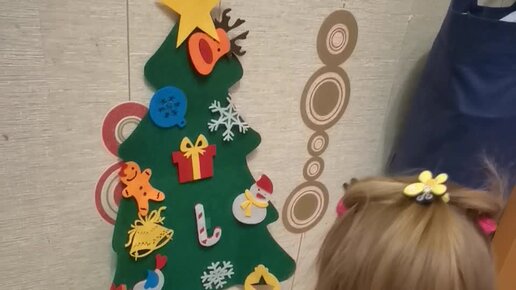 4г. Дочь наряжает ёлочку из фетра. 🎄 Игрушки на липучках. 🎁