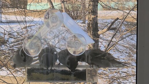 Воробьиная драка за место в кормушке