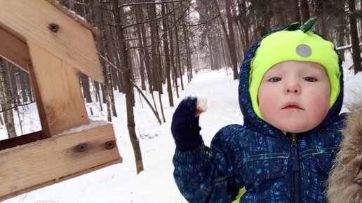 Двойняшки кормят птиц. Леон - Сусанин, показывает бабушке дорогу
