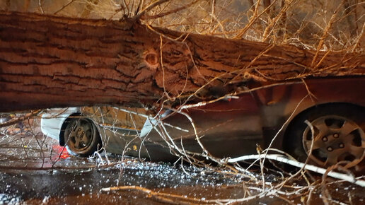 В Самаре на движущийся автомобиль упало дерево. Движение перекрыто. Проспект Юных Пионеров, 136.