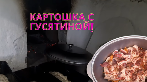 Неповторимый обед в русской печи - картошка с нежной гусятиной