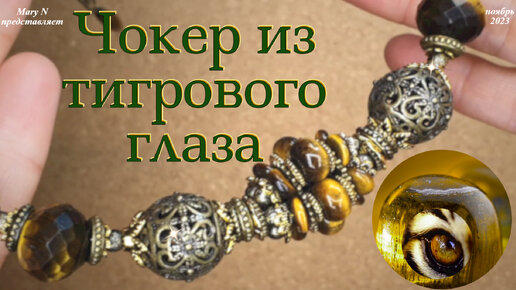 Чокер из тигрового глаза на мемори-проволоке