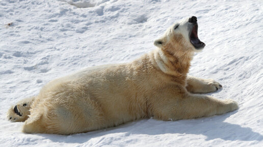 Белая медведица устроила аттракцион с мячом в Ленинградском зоопарке