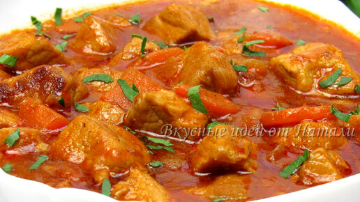 Гуляш из свинины с подливкой на сковороде. Нежнейшее мясо буквально тает во рту!