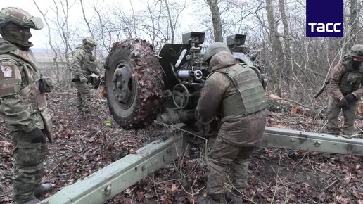 Расчеты гаубиц Д-30 артиллерии группировки войск "Восток" оказывают огневую поддержку штурмовым подразделениям