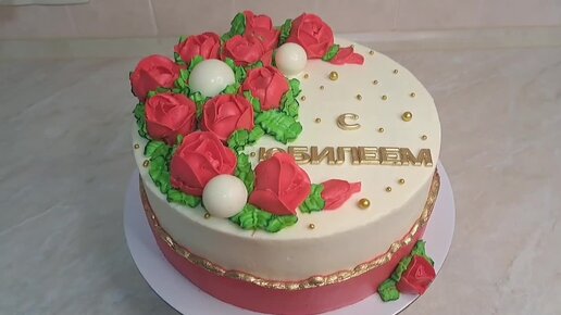 Торт с розами на юбилей.
