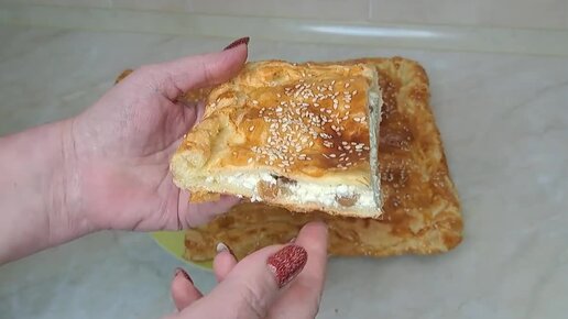Пирог из слоёного теста с творогом.