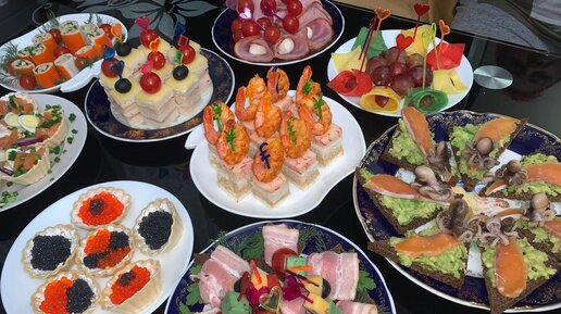 Несколько вариантов канапе и тарталеток на праздничный стол.