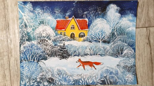 Деревья получаются, как живые даже у новичков: зимний лес обычной губкой.