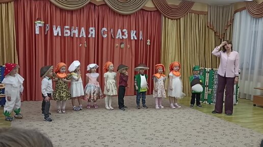 Наш первый спектакль в музыкально-театральной студии "Сказочный гном". Юлёна в роли лисички (гриб). Часть 3.