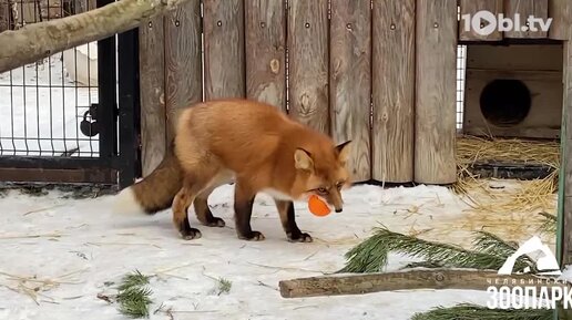 Лисички в челябинском зоопарке играют с мячиком цвета их прекрасных шубок