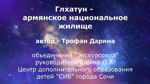 Экскурсия "Глхатун - жилище армянского народа". Автор Трофан Дарина, объединение "Экскурсовод", руководитель Шеина О.А.