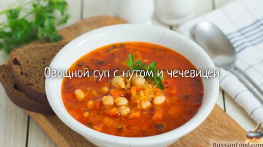 Сытно и густо! Овощной суп с нутом и чечевицей