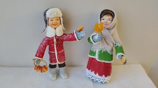 Ватные игрушки Мальчик с баранками и Девочка с леденцом